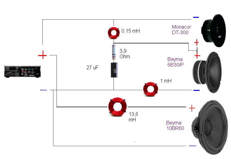 Se puede eliminar directamente el condensador de 27 uF, igualmente se puede jugar con valores menores de la bobina pequeña (0,15 mH) y con valores diferentes a la resistencia de 3,9 Ohm., cuestión probar y elegir la combinación más adecuada al gusto musical de cada uno. Es muy divertido jugar con estas combinaciones y observar como varia la puesta en escena musical dependiendo de estos cambios.
