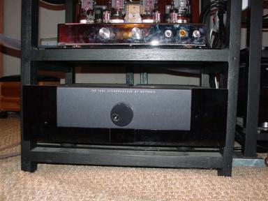La señal del DVD Pioneer DV 515 se envió por vía analógica a través de un cable rojo/negro al previo pasivo Lumley. Al mismo tiempo la señal digital desde el mismo lector se envió vía óptica al conversor DAC-1 Bechmark y desde éste con un cable MIT M 330 PLUS a otra entrada del mismo previo pasivo: