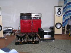 Hemos querido comparar la mejor electrónica existente contra el mejor amplificador HUM a válvulas diseñado por José María Lancis (link). Este sistema a válvulas puede considerarse todo un fuera de parámetros sin paliativos. De este modo, nos podremos hacer una idea de las diferencias (tan cacareadas por el mundo audiófilo) que existen entre amplificadores de estado sólido tan referenciales como el Mark Levinson contra un monstruo equivalente pero a válvulas, tan distanciados en cuanto a topología y diseño conceptual.