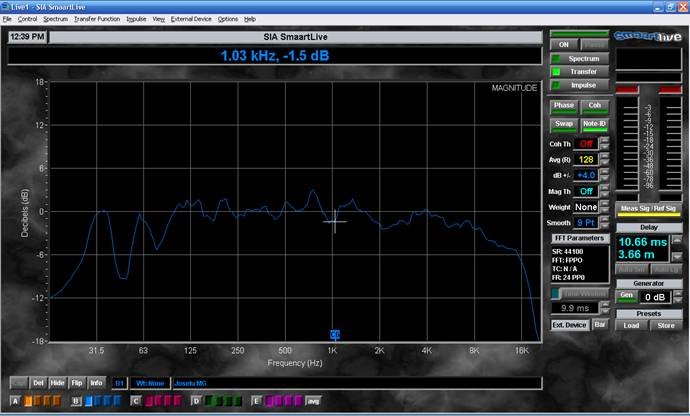 Así se pudo observar cómo se puede usar el SmaartLive para ver el rango de frecuencias en las que es capaz de trabajar un altavoz; cómo afecta cualquier cambio en la pendiente de corte de los altavoces en la respuesta de éstos; cómo se pueden ajustar los delays o retrasos entre altavoces con la función Impulse; cómo se pueden tratar las resonancias y modos de la sala con el ecualizador paramétrico; cómo afectan los cambios de fase en la zona de cruce de dos altavoces, etc etc