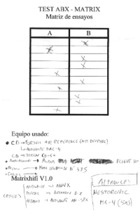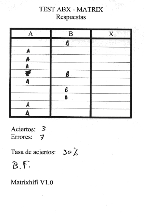 A continuación se muestran los escaneados de la matriz inicial y de los las hojas de resultados de las personas que se sometieron a la prueba ciega.