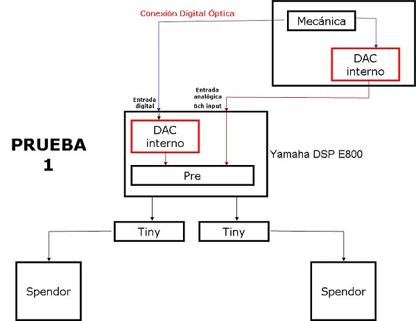 Hemos realizado una prueba de la conversion que realiza el DVD Pioneer 656A contra la del procesador Yamaha DSPE800, para saber si suenan iguales, mediante prueba ciega.